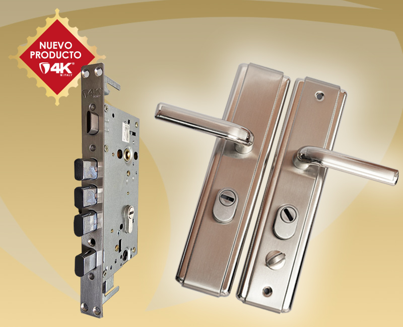 Grosor de caja 3 cms /cerrojo nocturno integrado a la cerradura Picaporte reversible / Pasador con pin de alta resistencia / Pasadores en acero endurecido / Manijas macizas con tornillo pasante para evitar su caída Sistema de rodamiento / Pasador superior e inferior .